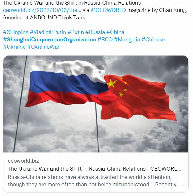 Media link: https://ceoworld.biz/2022/10/03/the-ukraine-war-and-the-shift-in-russia-china-relations/