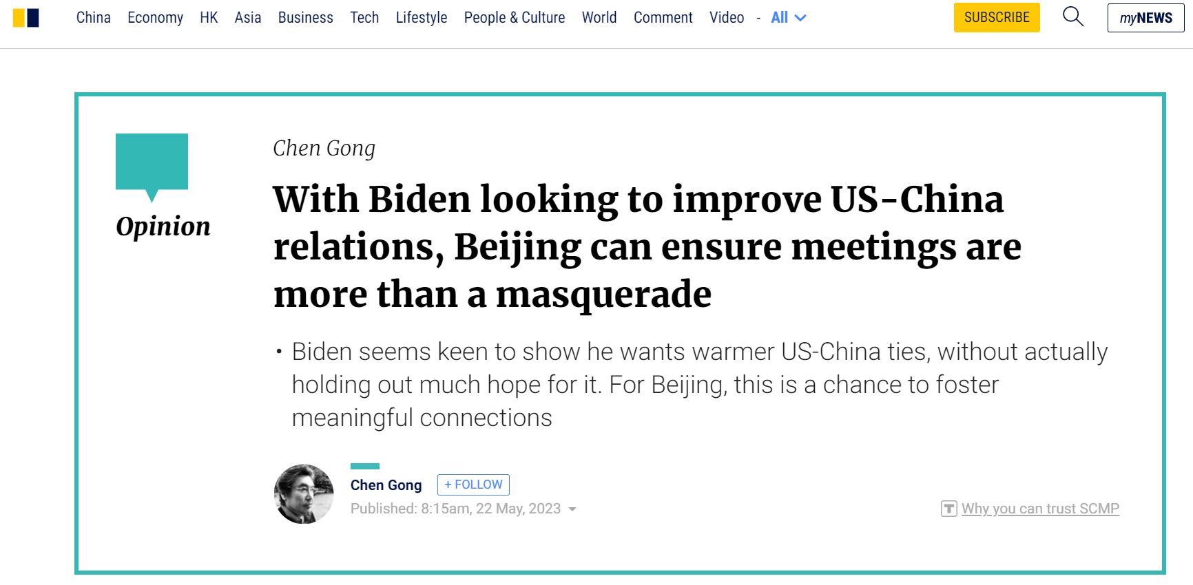 Media link: https://www.scmp.com/comment/opinion/article/3221173/biden-looking-improve-us-china-relations-beijing-can-ensure-meetings-are-more-masquerade