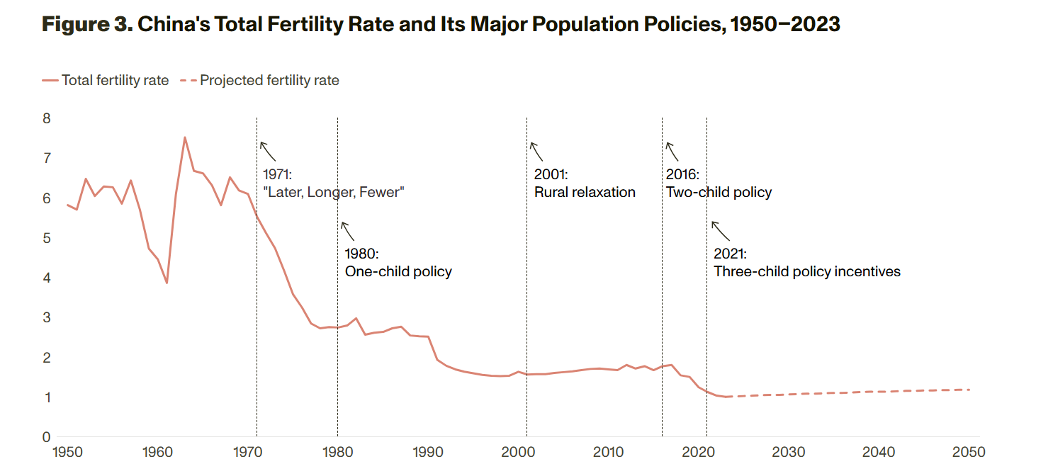 Even after China ended the one-child policy and moved to two- and three-child policies, the fertility rate has declined or stagnated (Figure 3).
