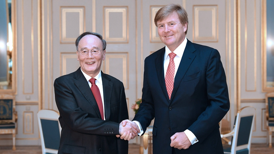Chinese Vice President Wang Qishan paid a visit to the Netherlands from Tuesday to Thursday, pledging to cement bilateral ties and achieve common development.