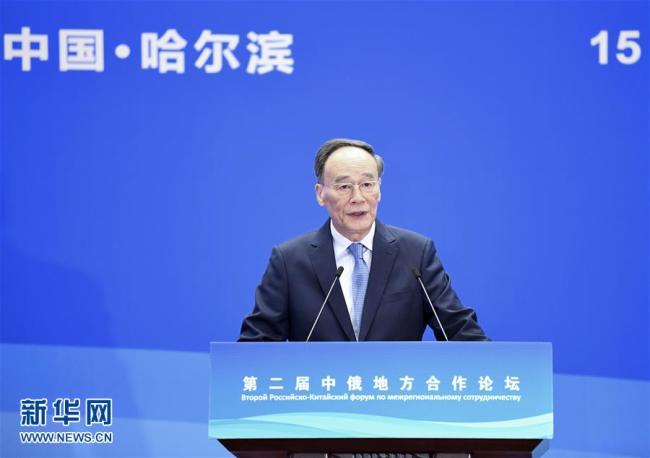 Chinese Vice President Wang Qishan attended the sixth China-Russia Exposition from June 14 to 15 in Harbin, northeast China's Heilongjiang Province, and met with Russian Deputy Prime Minister Maxim Akimov.