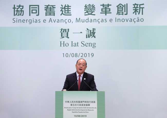 After the about 30-minute voting procedure, Song Man Lei, president of the CE election management committee, told the 400-member election committee and media, "Mr. Ho Iat Seng gained 392 votes to be the CE-designate."