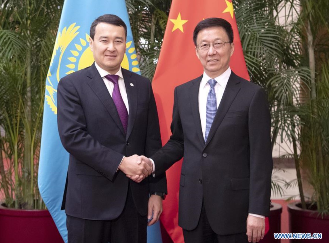 Chinese Vice Premier Han Zheng met with Kazakhstan's First Deputy Prime Minister Alikhan Smailov Monday in Beijing, who also co-chaired the 9th meeting of the China-Kazakhstan Cooperation Committee.