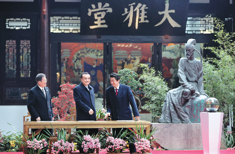 Premier Li Keqiang, ROK President Moon Jae-in and Japanese Prime Minister Shinzo Abe also laid out a blueprint for trilateral cooperation for the next decade as they convened in Chengdu, Sichuan province, for the eighth China-Japan-ROK leaders' meeting.